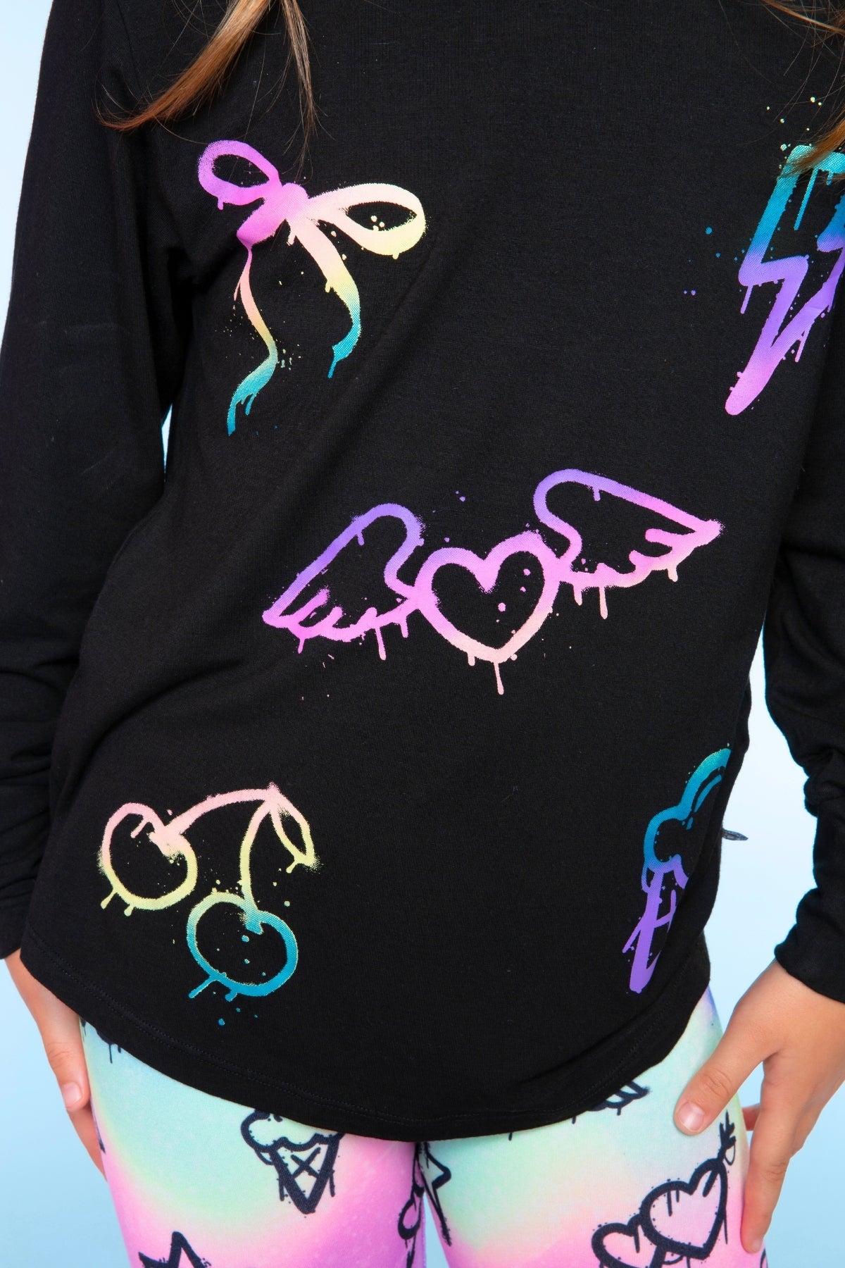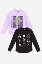 Our Modal Long Sleeve Shirttail Top is featured in our ultra-soft and drapey Modal fabric. This perfect everyday top goes back to all of our PixieLane leggings and flares. With a one-of-a-kind graphic screen, this style is sure to be a favorite!