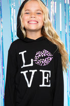 Our Knit Hoodie Pullover is made in our buttery soft Modal knit fabric and features a cool graphic screen. With a shirttail hem & cozy hood, this is the perfect style to wear back to leggings & flares!