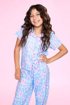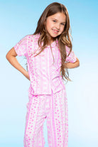 This trendy lounge set is what all the kids are asking for! Designed in our best-selling buttery Simply Soft fabric, this style features a short sleeve button down top & long sleeve wide leg pant with contrast piping. A total must-have!