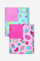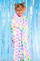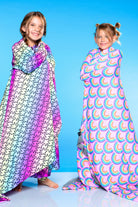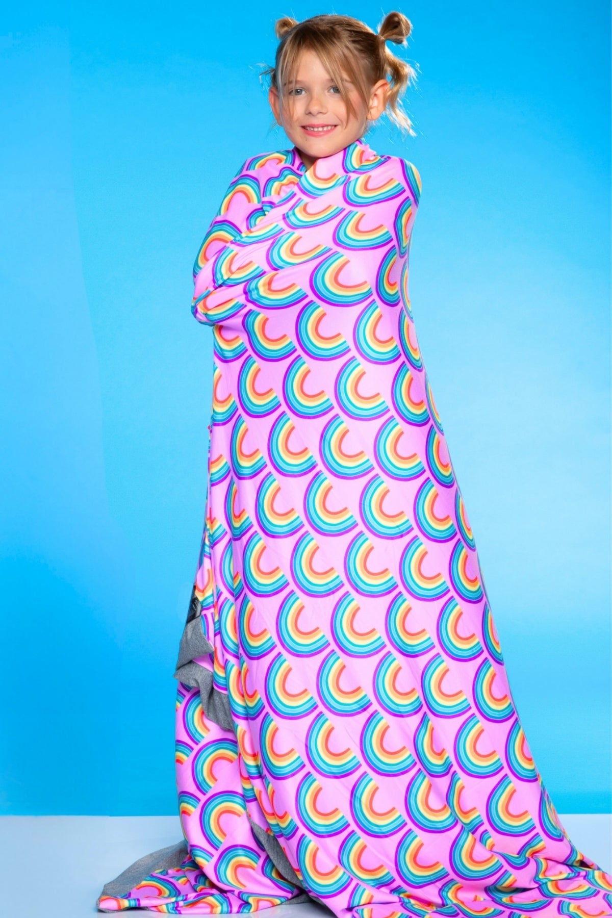 Our super cozy reversible t-shirt blanket is made in our Simply Soft fabric. This is the softest blanket you will ever own and it keeps you warm and cool at the same time! This full sized blanket measures 54 x 71" will be your favorite thing to snuggle with, whether on the couch watching a movie or cuddling in bed. It's also the perfect travel blanket!
