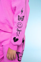 Our Cotton Soft French Terry Everyday Hoodie features a relaxed, loose-fitting shape, cool graphic screen and a high-low hem. Pair this staple hoodie back to it's matching sweatpant or any of our leggings, wide legs or flares!