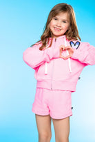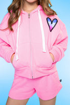 Our French Terry Luxe Drop Shoulder Zip Hoodie is THE IT STYLE! This ultra-cozy, buttery soft and lofty cotton-rich French Terry makes the ULTIMATE sweatshirt for the season! Featuring a cool drop shoulder, wide cotton drawstring and skimmer length, this style hits right at the waistband. It's perfect back to our new French Terry Luxe Sweatpants or any of our printed leggings! This fabric washes extremely well-- you will want to stock up on all of our essential fall colors!