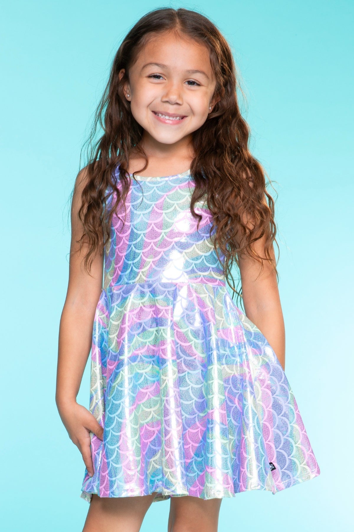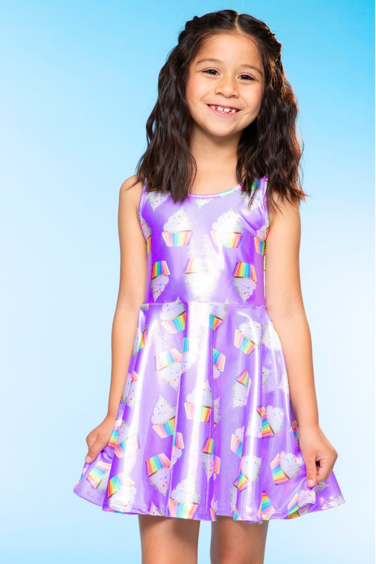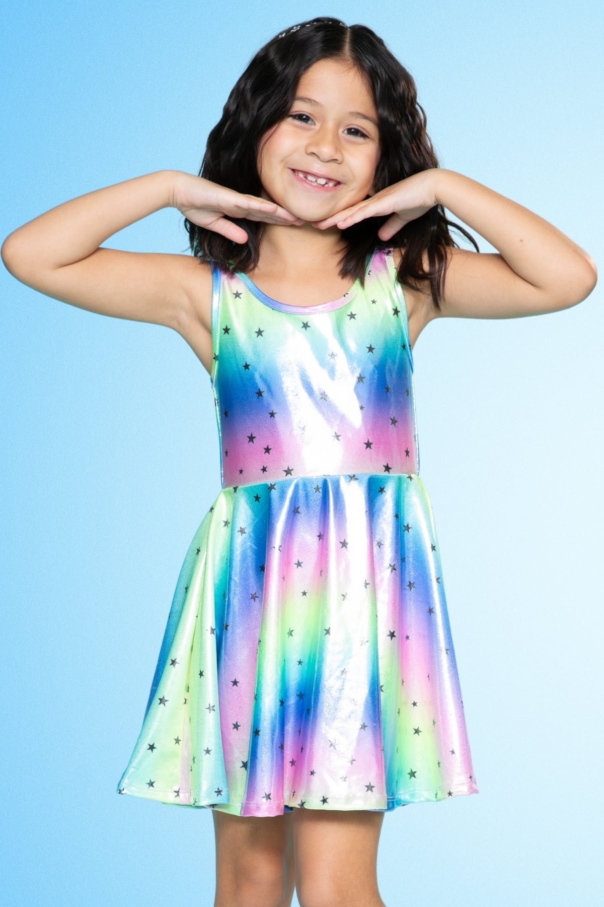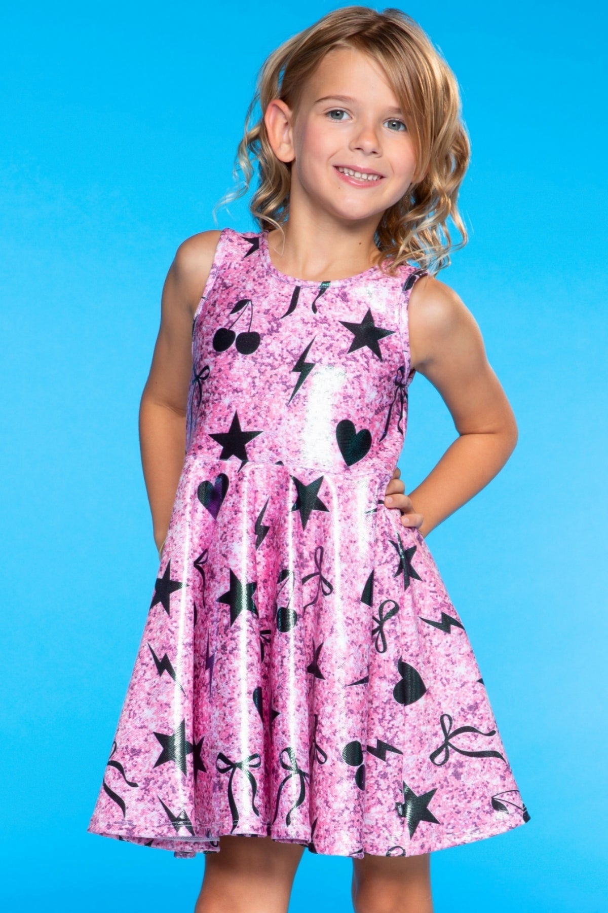 The ultimate twirl dress! This style is a total showstopper. Featuring a skater bottom with full skirt sweep and our High Shine fabric, she is going to have all confidence in this beautiful and fun dress.