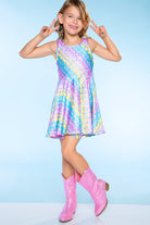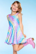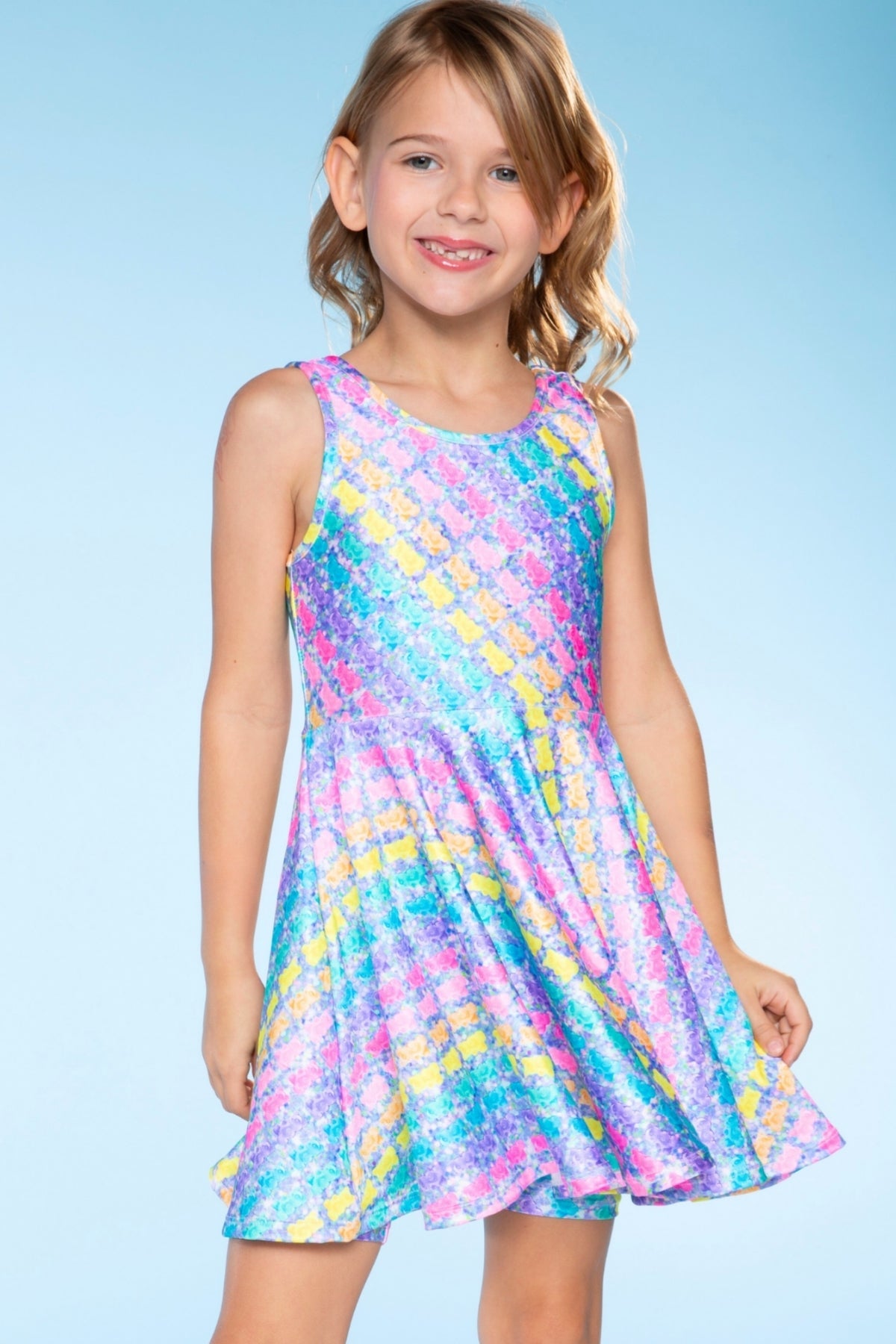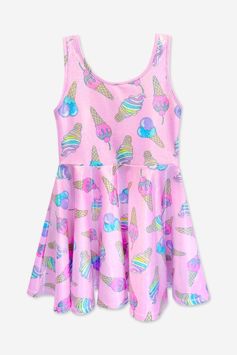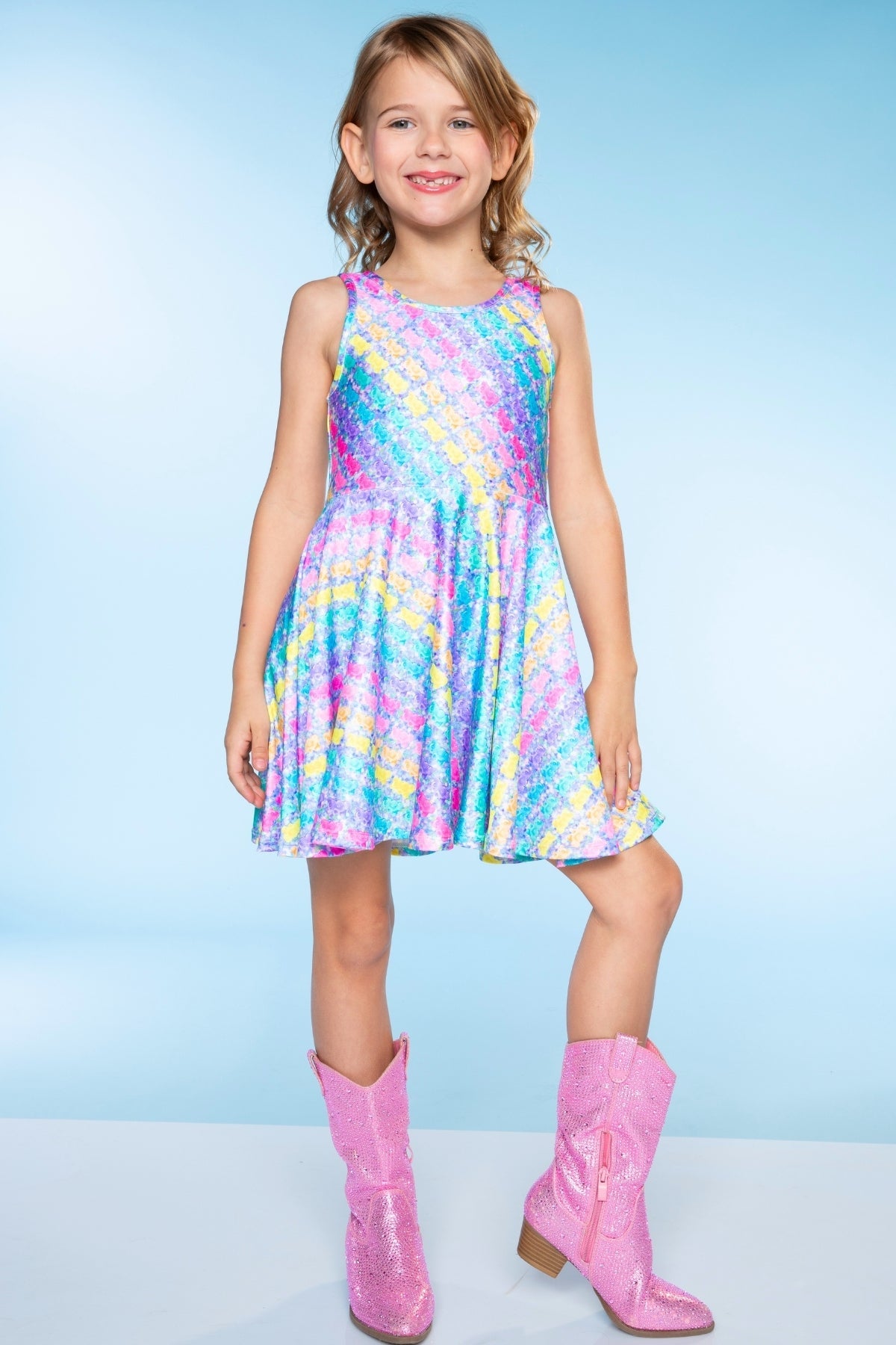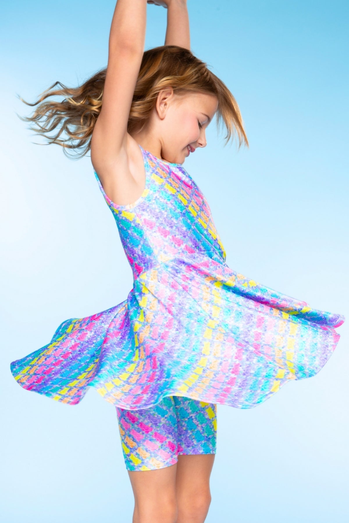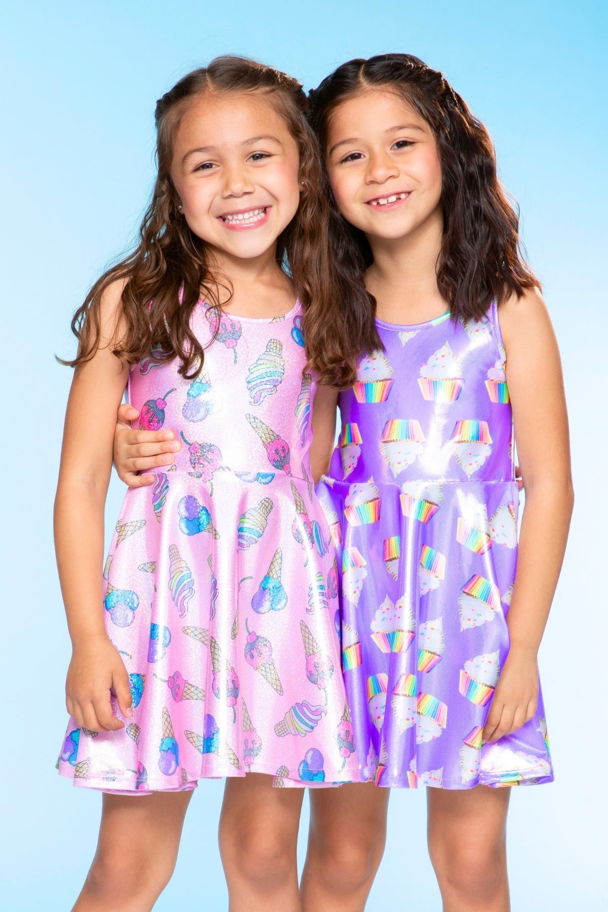 The ultimate twirl dress! This style is a total showstopper. Featuring a skater bottom with full skirt sweep and our High Shine fabric, she is going to have all confidence in this beautiful and fun dress.