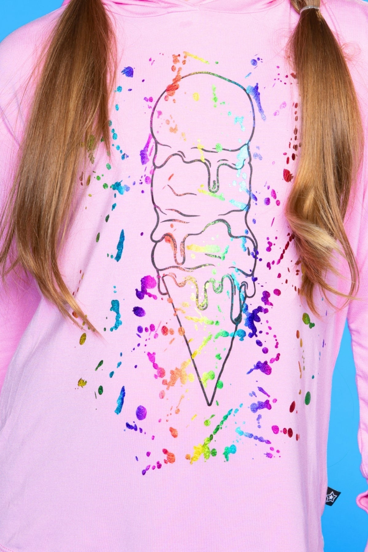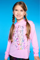 Our Knit Hoodie Pullover is made in our buttery soft Modal knit fabric and features a cool graphic screen. With a shirttail hem & cozy hood, this is the perfect style to wear back to leggings & flares!