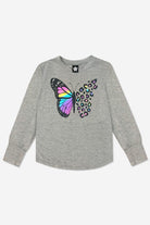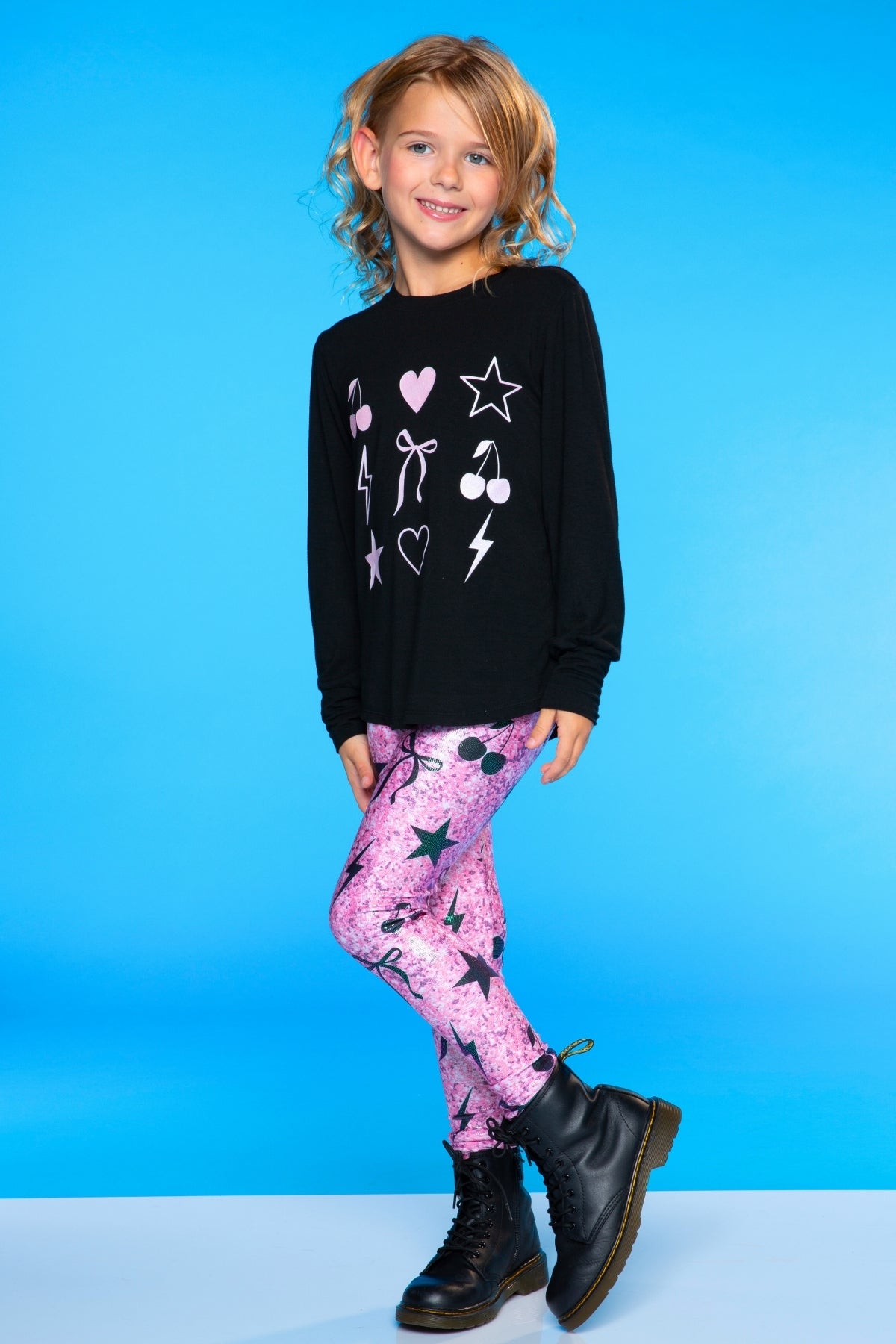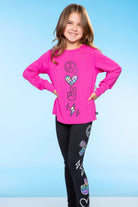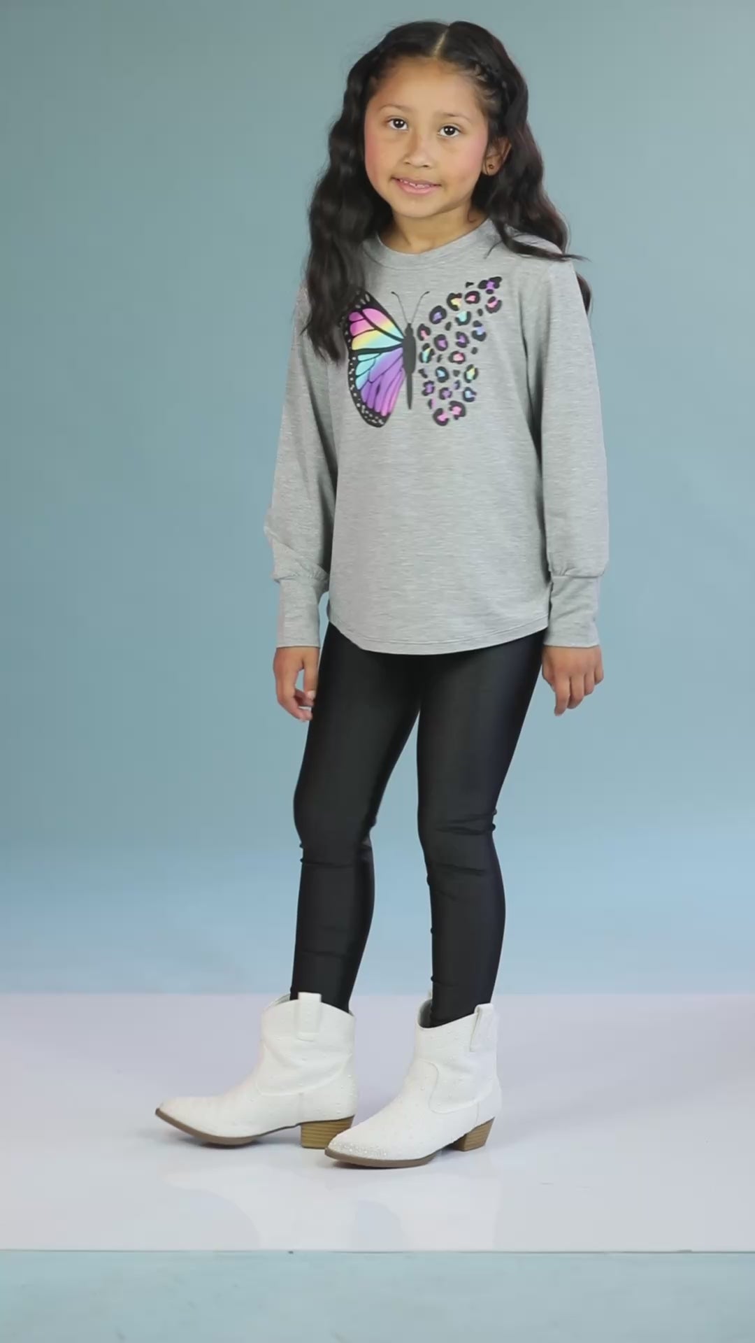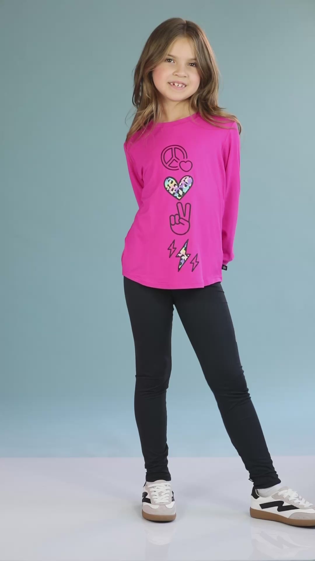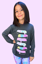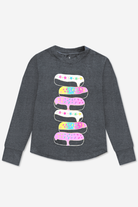 Our Modal Long Sleeve Shirttail Top is featured in our ultra-soft and drapey Modal fabric. This perfect everyday top goes back to all of our PixieLane leggings and flares. With a one-of-a-kind graphic screen, this style is sure to be a favorite!