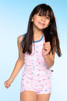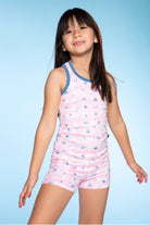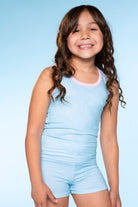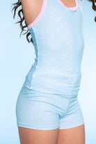 Made in our soft and stretchy Simply Soft fabric, this style features a racerback tank & foldover waist tumble short bottom. The perfect cozy style to lounge around in!