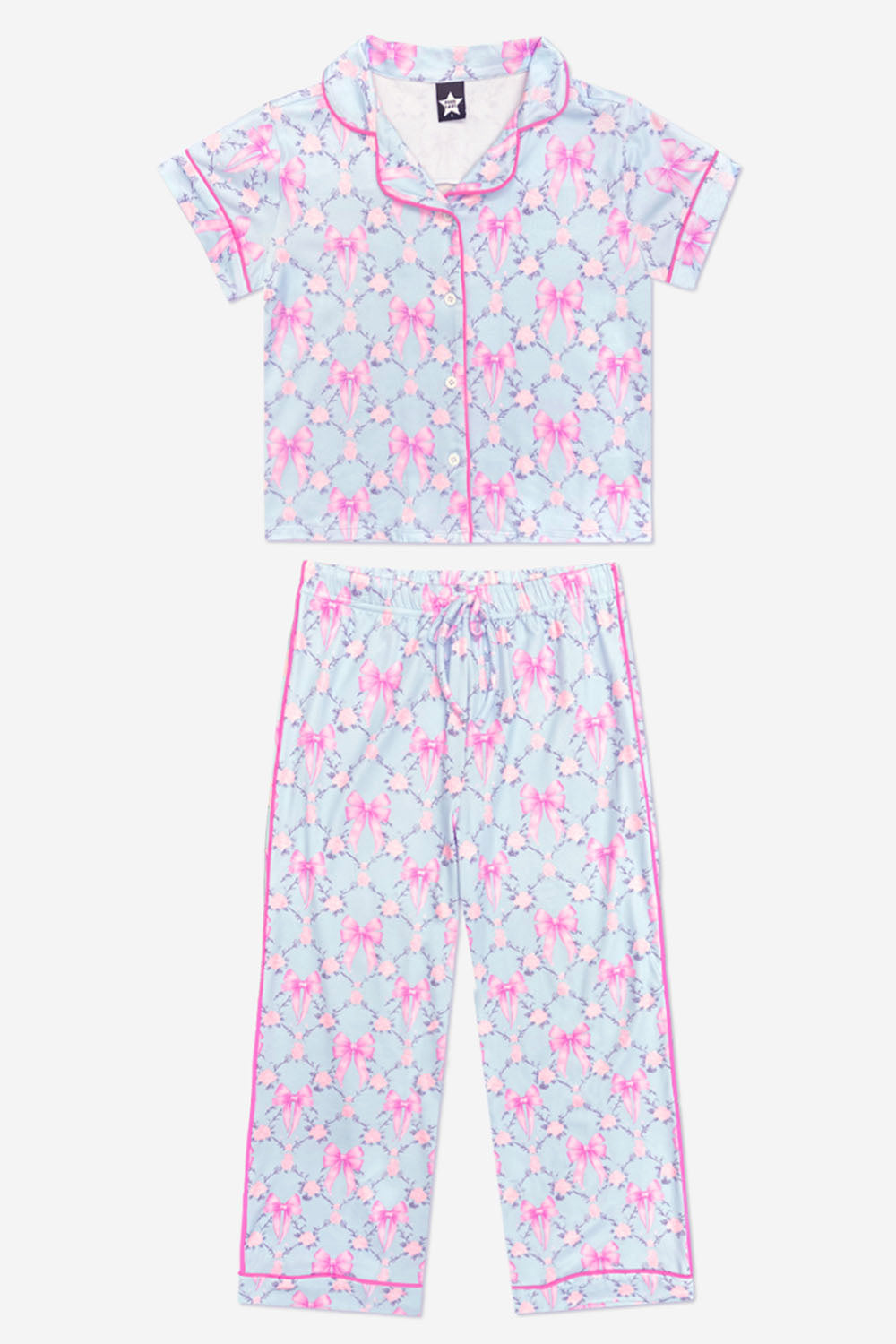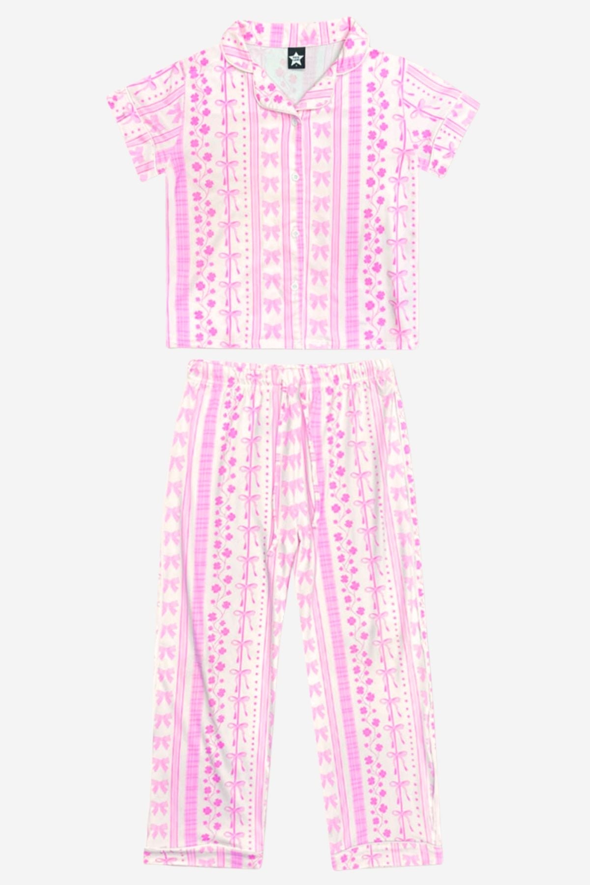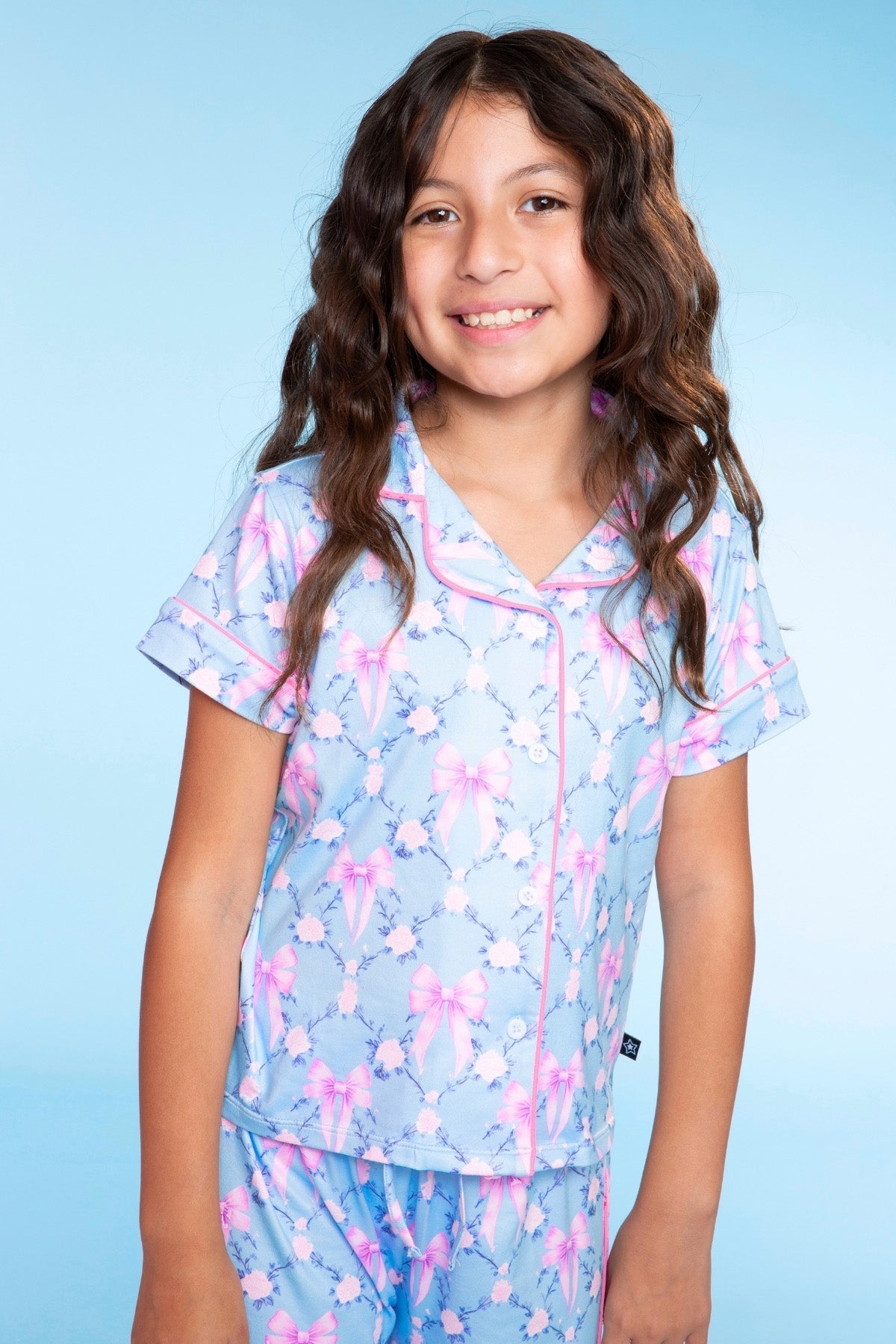 This trendy lounge set is what all the kids are asking for! Designed in our best-selling buttery Simply Soft fabric, this style features a short sleeve button down top & long sleeve wide leg pant with contrast piping. A total must-have!