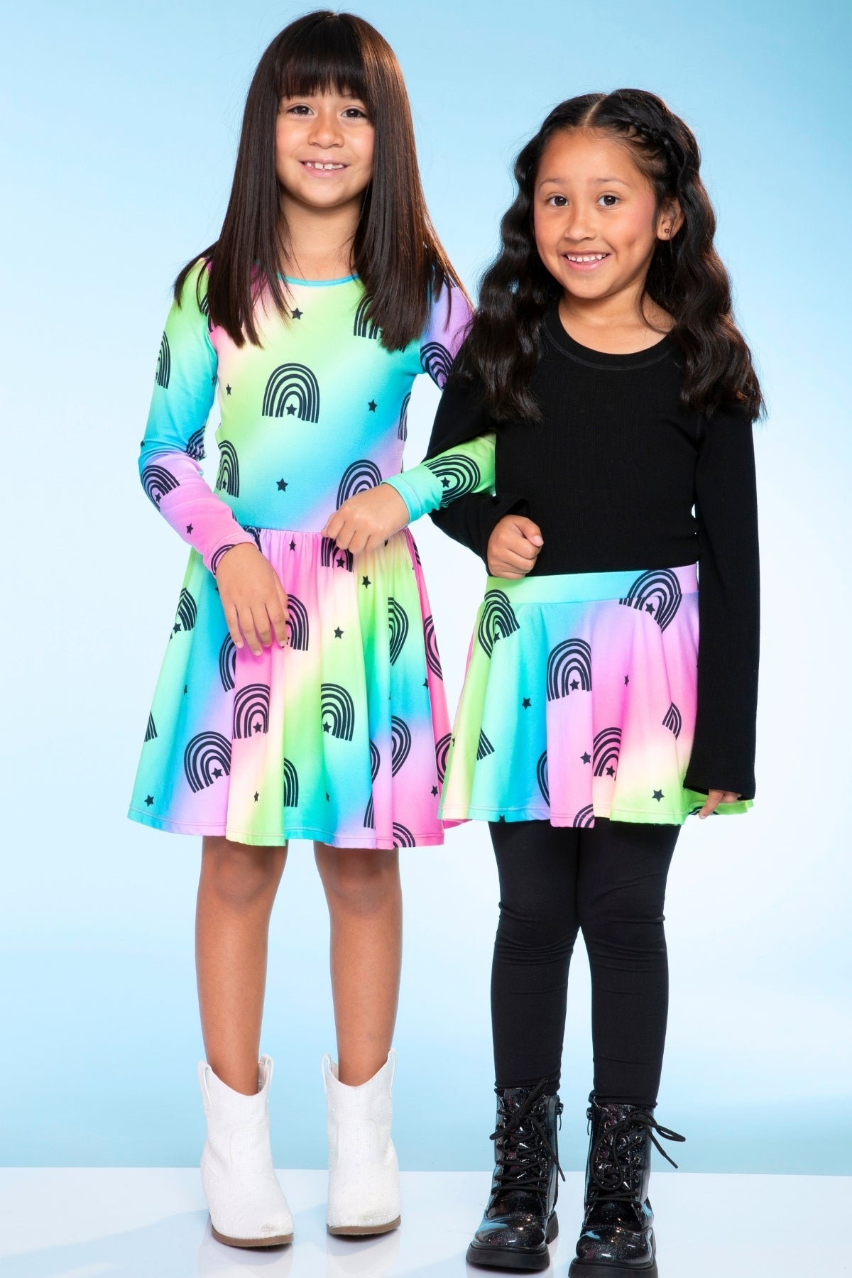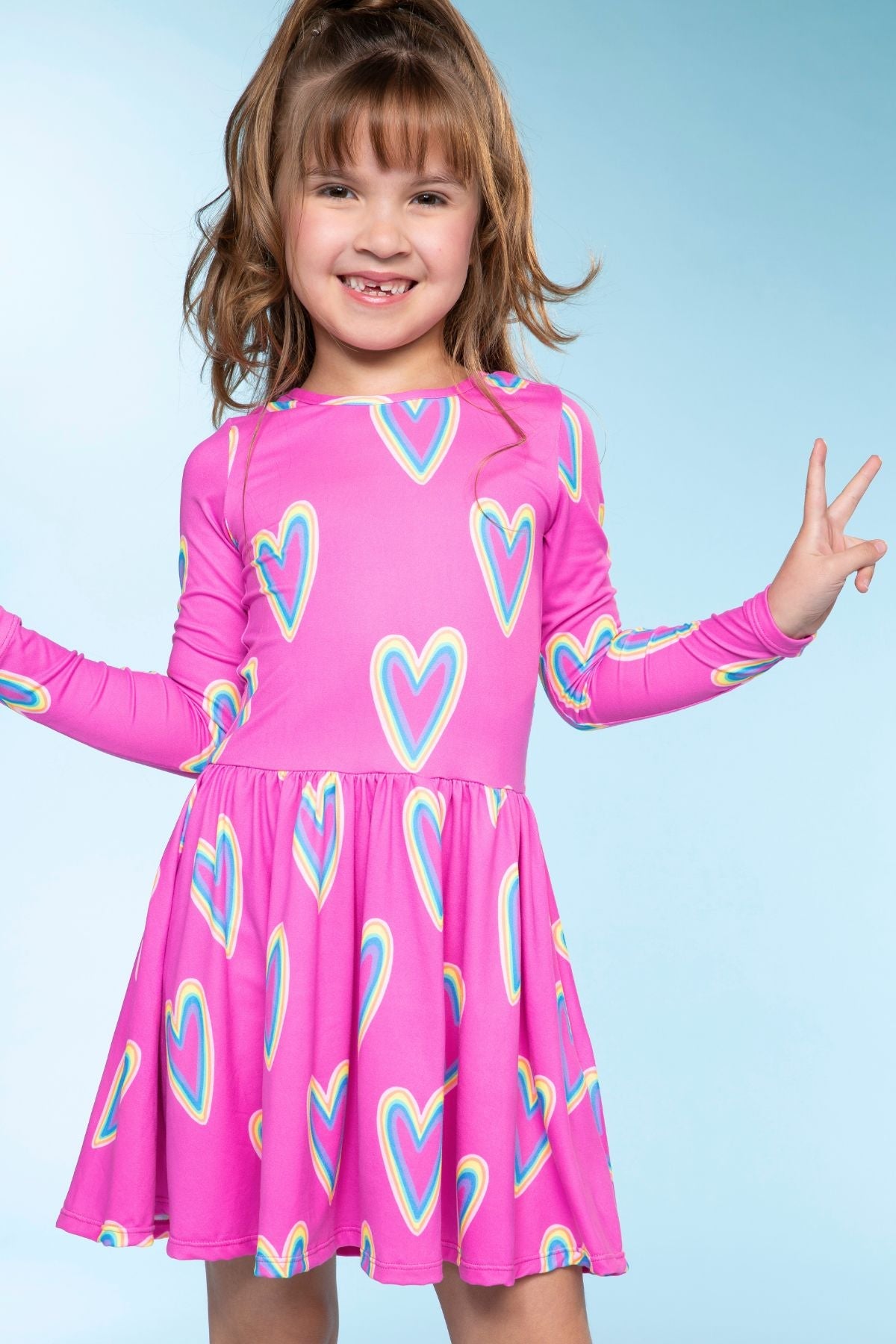 Our Be Happy dress is one of our staple silhouettes! This dress features cross-back detail and a shirred elastic waist and cross back detail. Made in our Simply Soft fabric, it's ultra soft, stretchy and washes extremely well. Trust us, your little will want this in multiple prints!