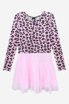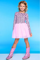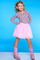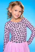 Our Long Sleeve Be Happy Tulle Dress features a shirred elastic waistband and cross-back detail with layers of tulle. The bodice is designed in our Simply Soft fabric and the skirt is made of our soft tulle. Our custom prints are one-of-a-kind and kids can't get enough of our fun colors & patterns!