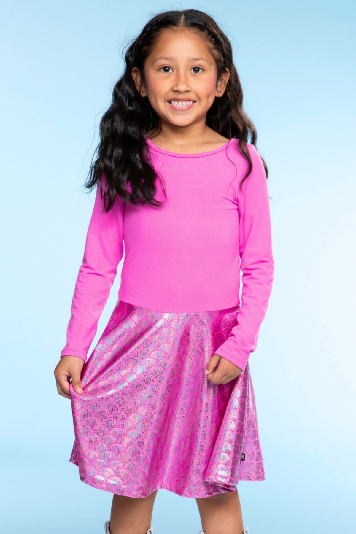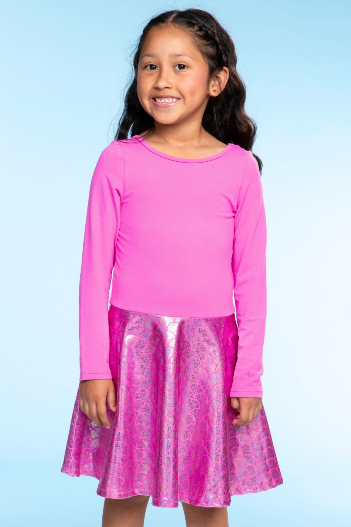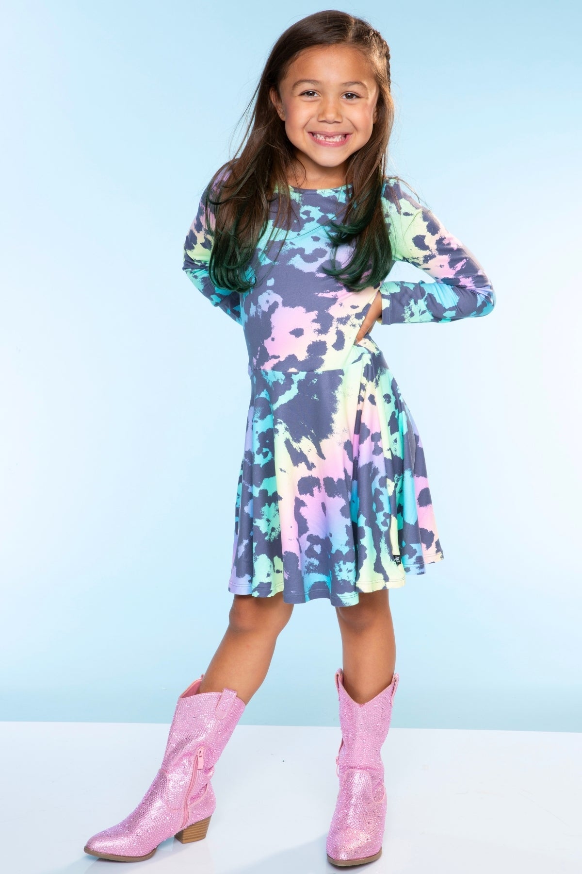 Our Long Sleeve Skater Dress has a feminine cross-back detail and fit 'n flare skater skirt. With an elastic-free waistband, it's perfect for any child who is sensitive to seams. Featured in our Simply Soft fabric, it's ultra soft and does not shrink, fade or pill. Our custom prints are one-of-a-kind and kids can't get enough of our fun colors & patterns!