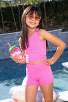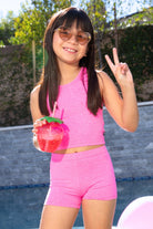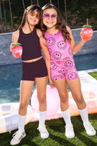 Our tumble short & cropped racerback tank set is a versatile combo! Made in our Simply Soft Luxe fabric, ultra-soft and stretchy, this fabric will not shrink, fade or pill! This style is perfect for dance, gymnastics, and cheer and can also be worn as separates!