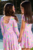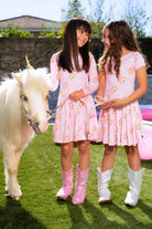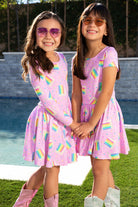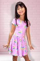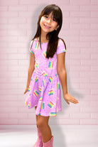 Our Be Happy dress is one of our staple silhouettes! This dress features a shirred elastic waist and cross back detail. Made in our Simply Soft fabric, it's ultra soft, stretchy and doesn't shrink, fade or pill! Trust us, your little will want this in multiple prints!