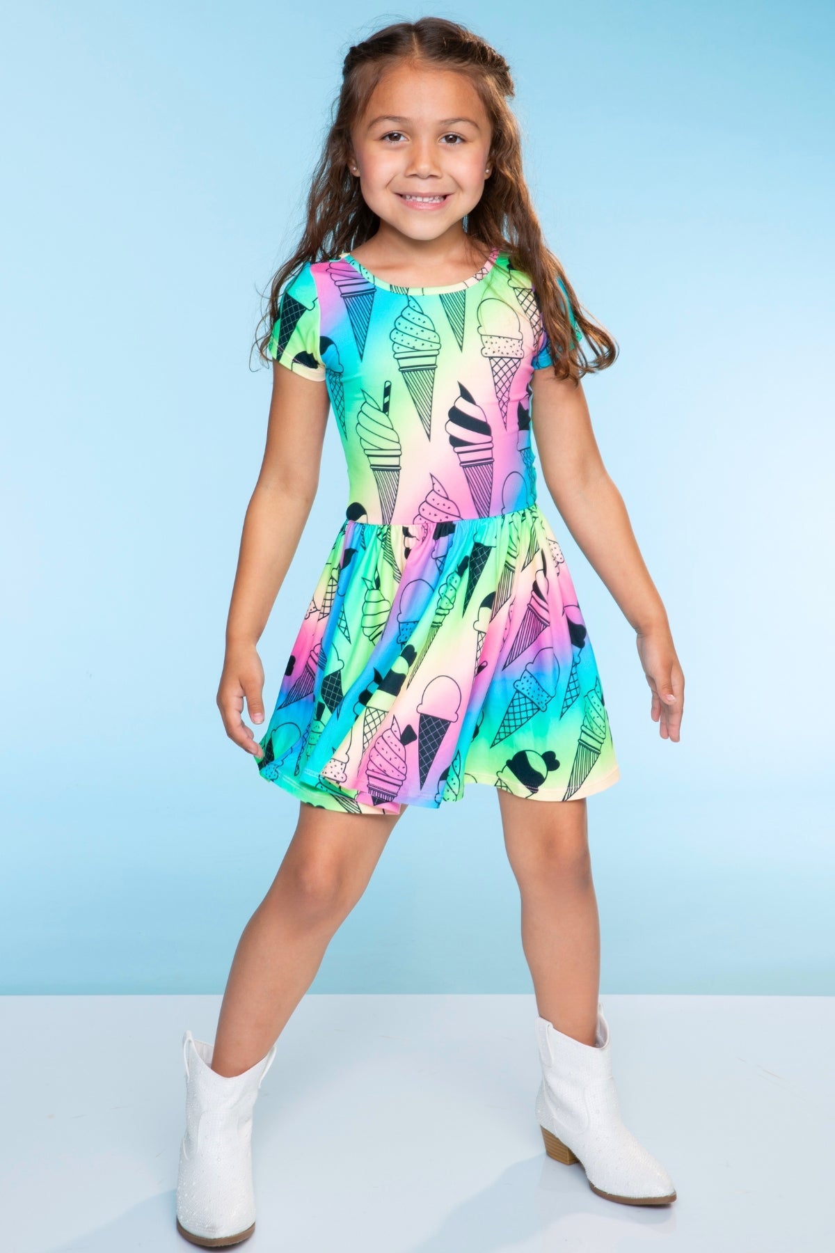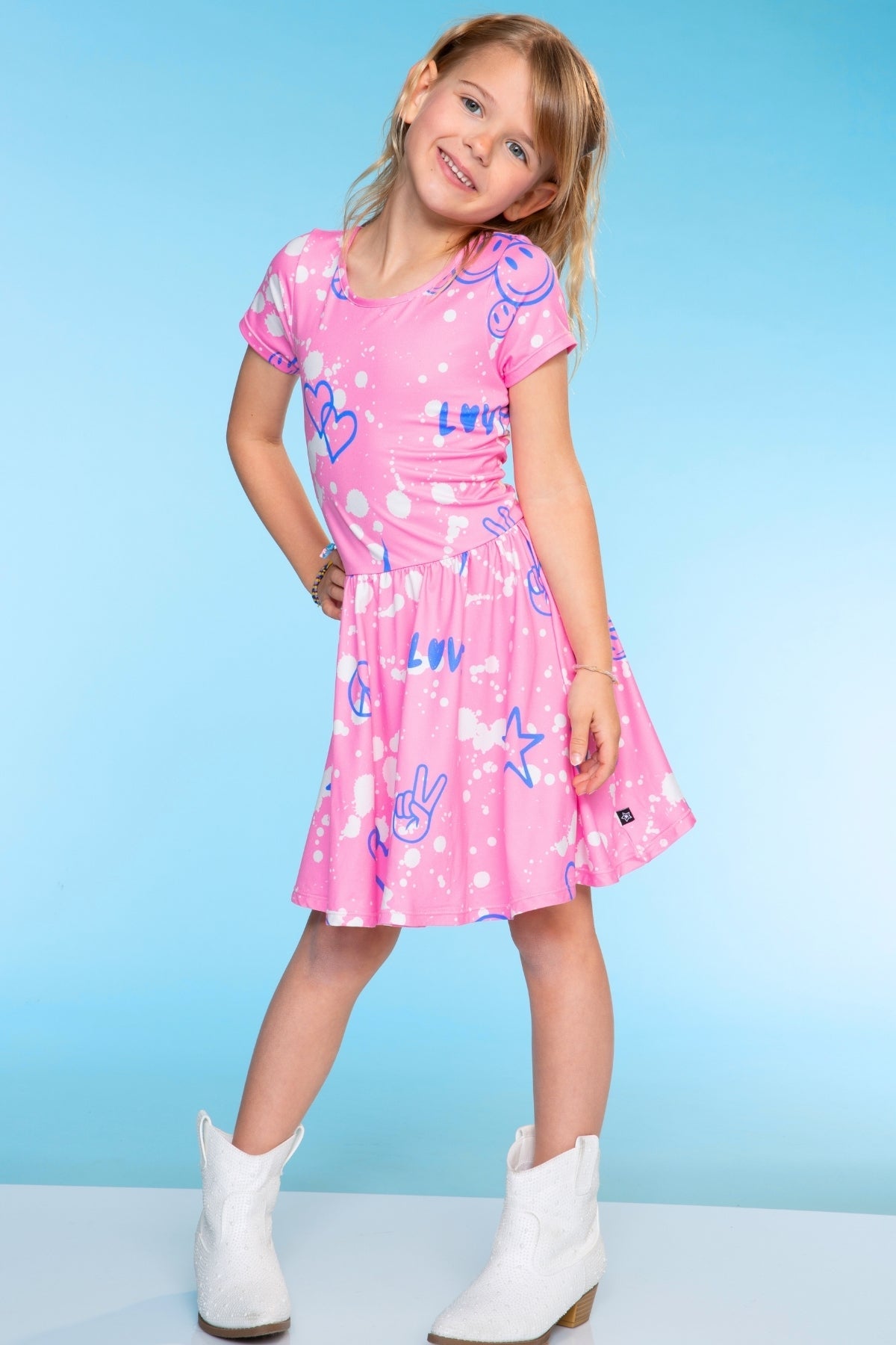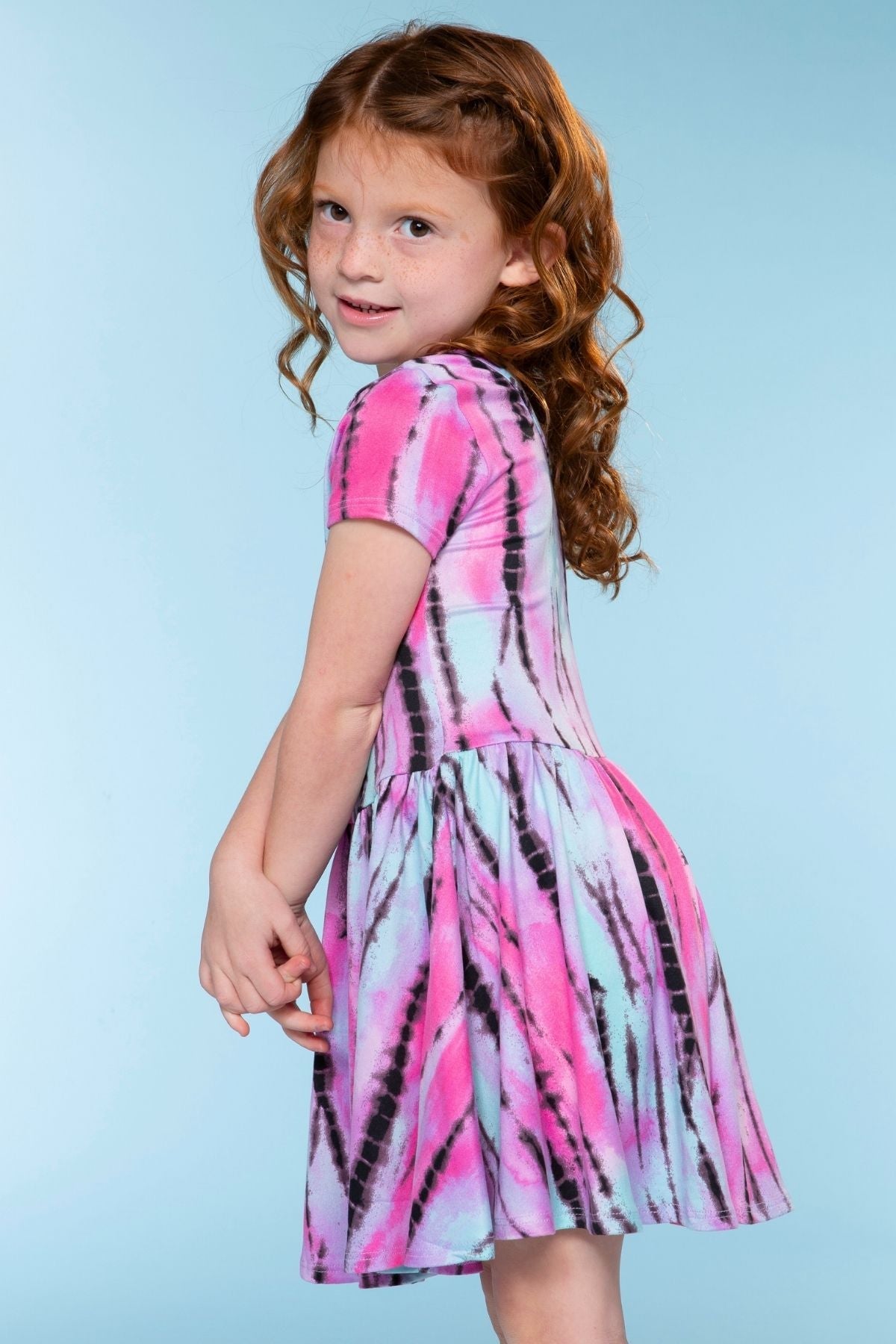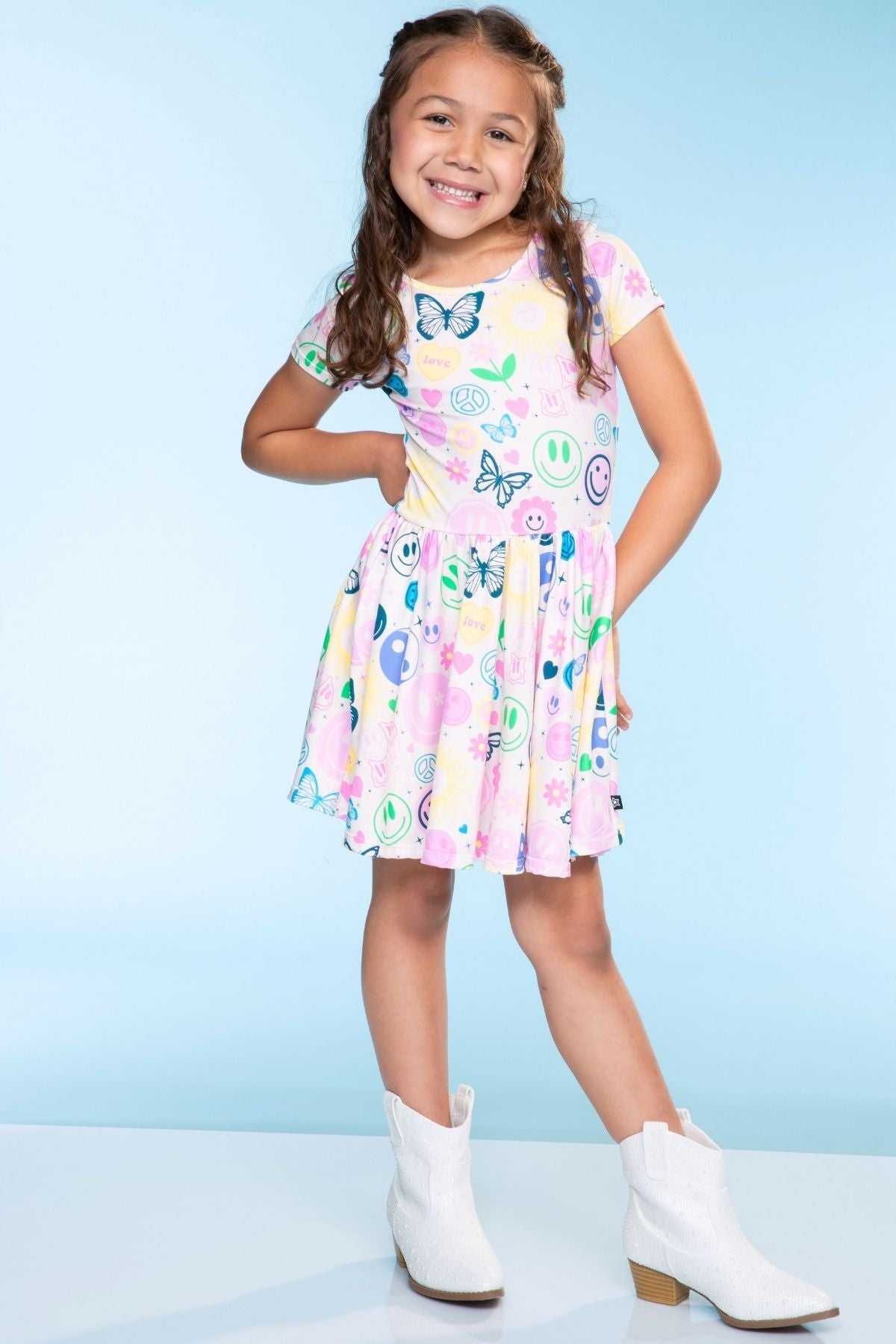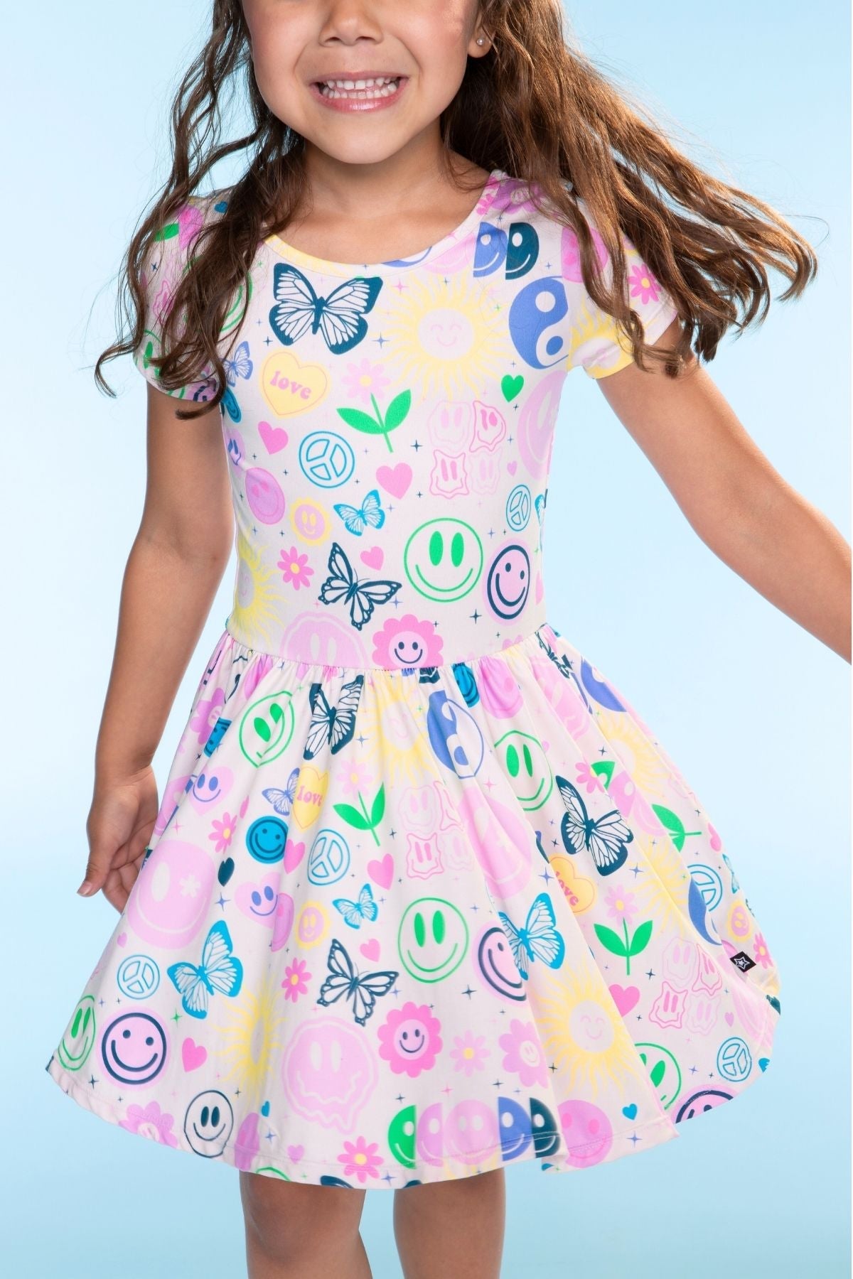 Our Be Happy dress is one of our staple silhouettes! This dress features a shirred elastic waist and a new scoop back detail. Made in our Simply Soft fabric, it's ultra soft, stretchy and does not shrink, fade or pill. Our custom prints are one-of-a-kind, trust us, your little will want this in multiple prints!