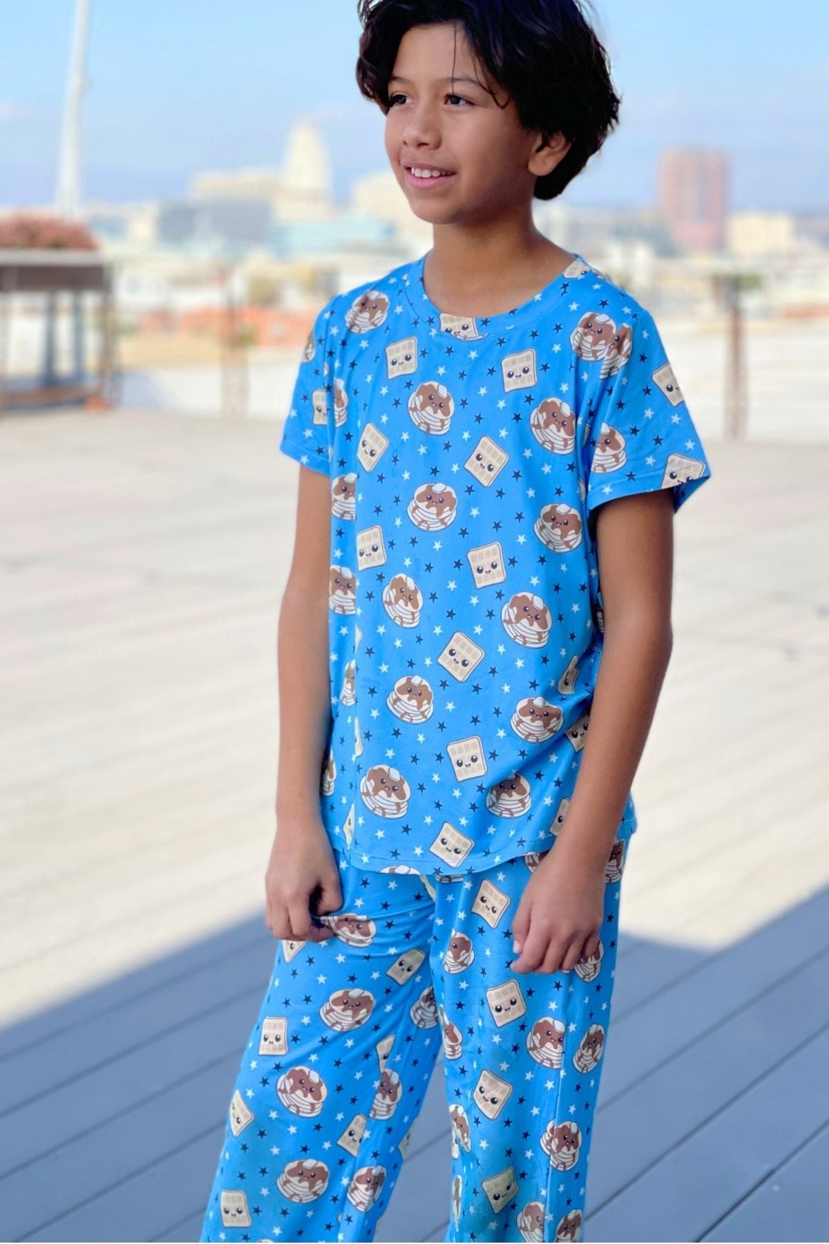 Our lounge is the softest around! Made in our Simply Soft fabric, this ultra-cozy, buttery soft fabric will not shrink, fade or pill! This set features a short sleeve relaxed tee back to a wide leg karate pant.