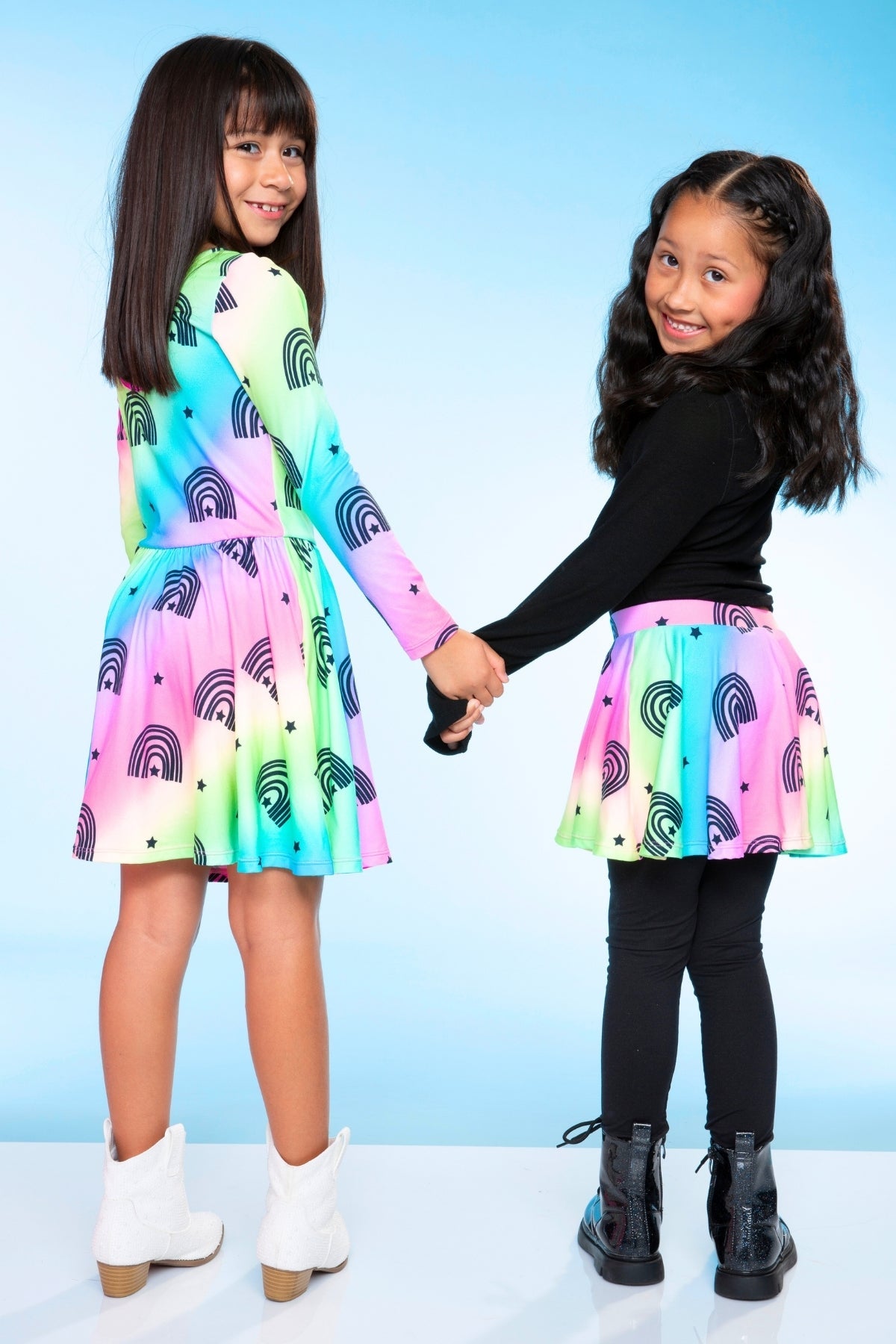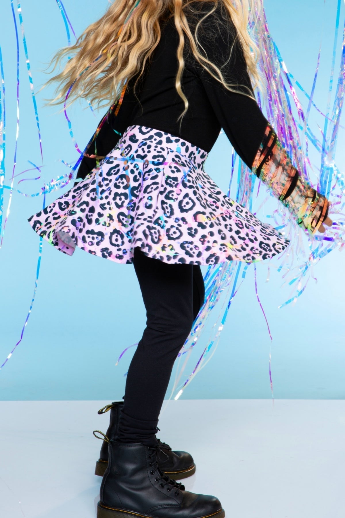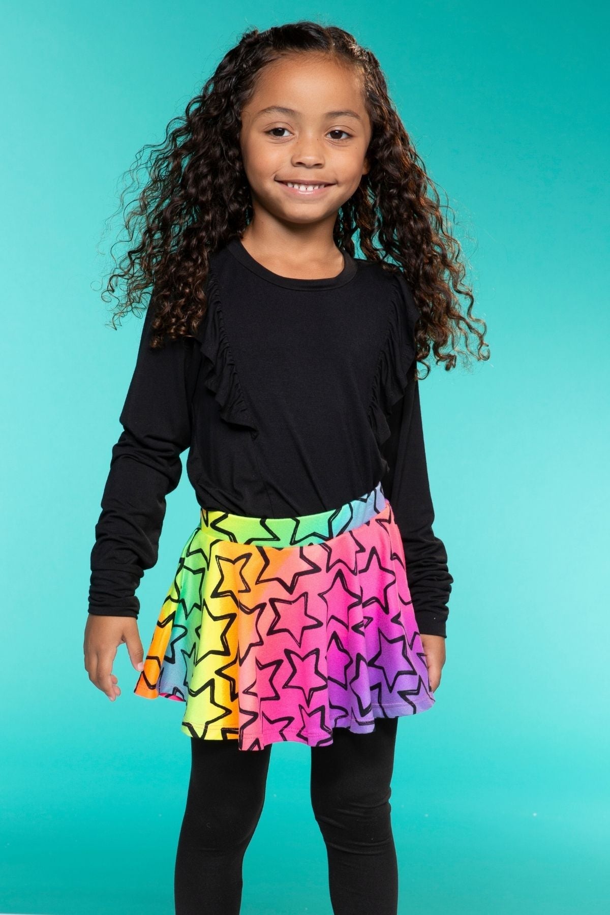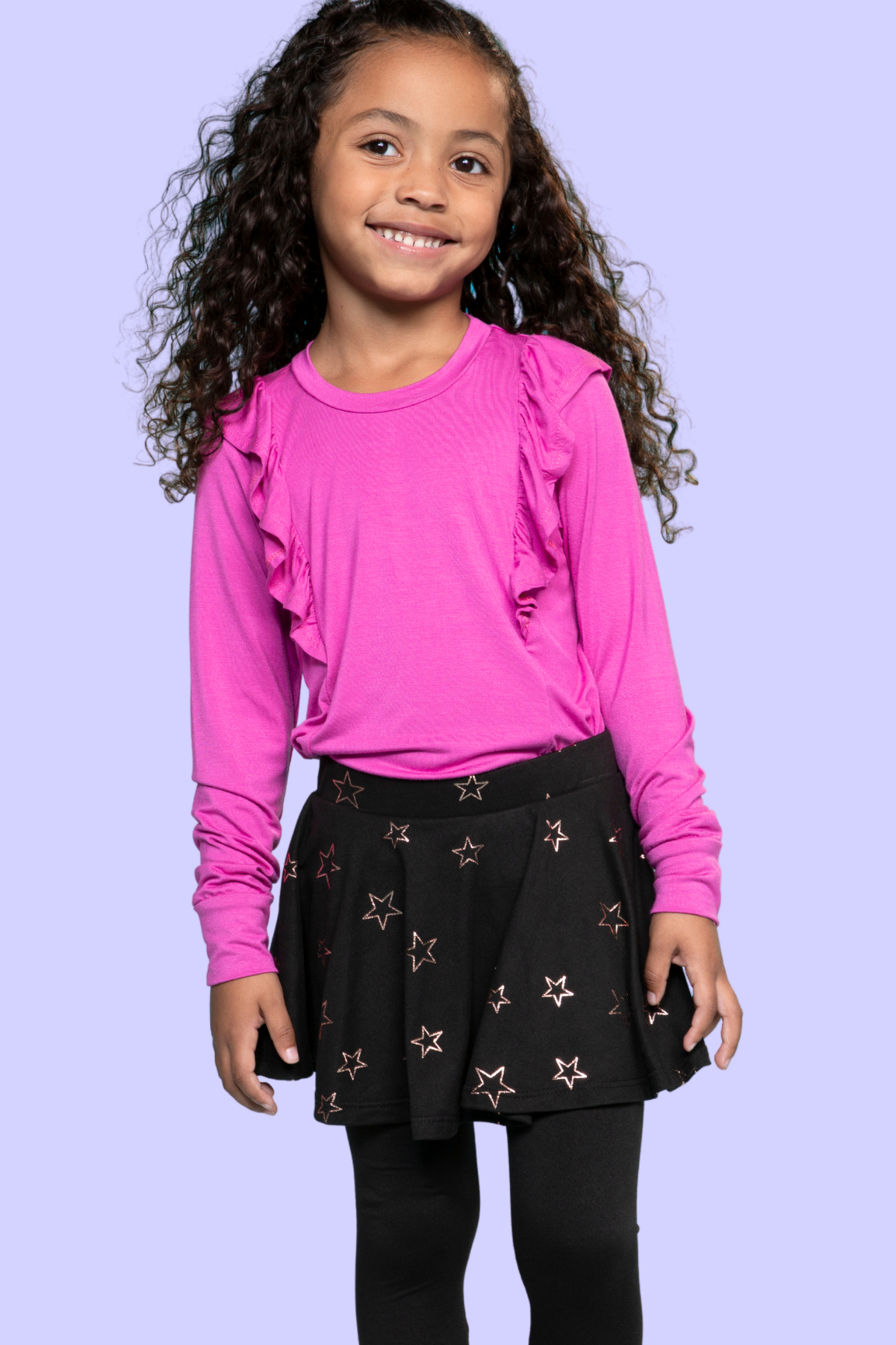 Our skater legging features a 2 in 1 skater skirt with buttery, soft leggings attached! Made in our Simply Soft fabric, pair this back to any of our PixieLane solid or graphic tops, and layer with a zip hoodie for a cool, cozy vibe!