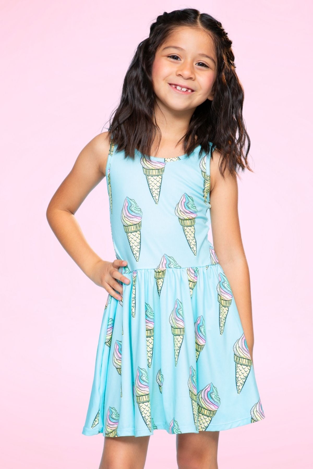 Our Be Happy dress is one of our staple silhouettes! This dress features a shirred elastic waist and a new scoop back detail! Made in our Simply Soft fabric, it's ultra soft, stretchy and washes extremely well. Trust us, your little will want this in multiple prints!