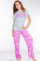 Our lounge is the softest around! This triblend graphic top is super soft, featuring our triblend fabric as well as a cool, front graphic. The karate pant is made in our Simply Soft fabric. This ultra cozy, buttery soft lounge bottom features an adjustable drawstring waistband and ultra cool wide leg opening. Trust us, you will want multiple in your closet!